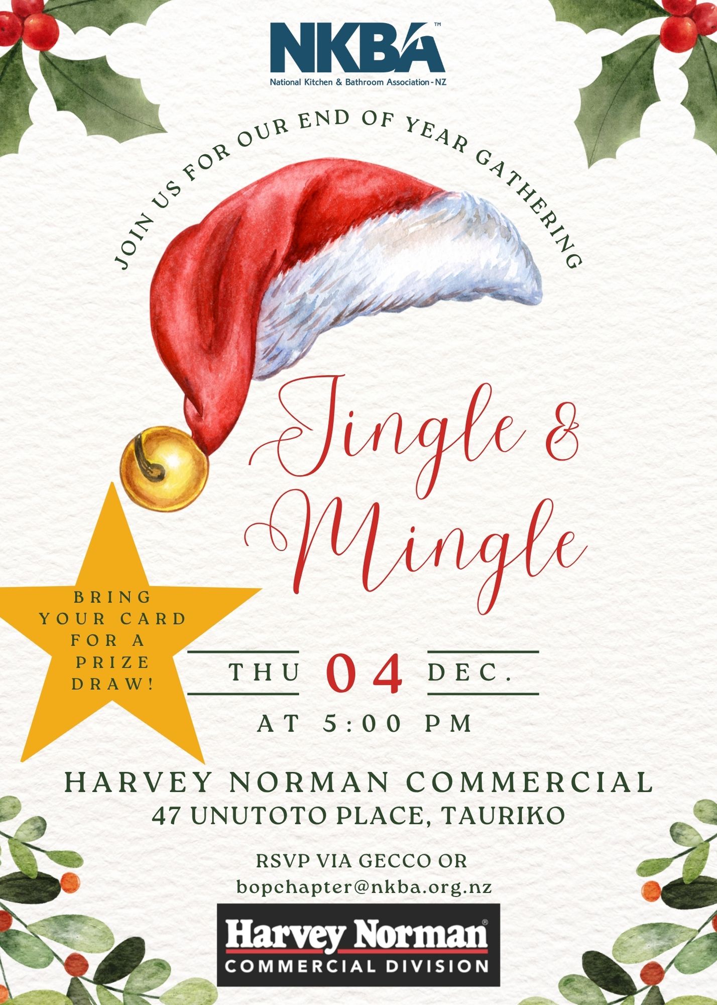 Join us for the end of year Bay of Plenty regional event hosted by Harvey Norman Commercial at their NEW showroom in Tauriko. Reps from Zenith & BSH will take us on a tour of new appliances and Enko will be there with their new handle range. Bring your festive spirit for a lovely way to celebrate the end of the year with a drink & something to eat. Remember your card for a seriously good prize draw!
